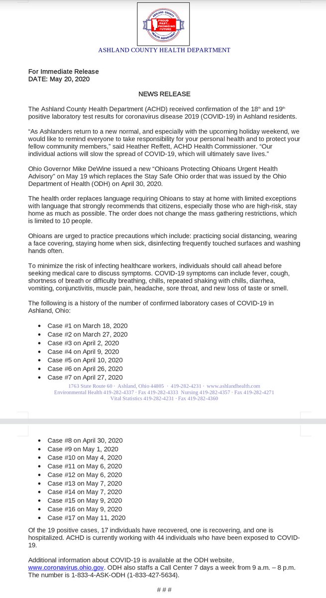 Ashland Health Department Reports 18th And 19th Cases Of Covid 19 In County Residents Covid 19 Ashland County Local Updates Ashlandsource Com